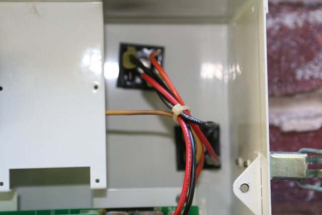 Being an electrical engineer, I immediately opened the case and removed the front panel to expose the innards. It’s easy to get inside. Just remove the two screws on the front panel and grab the top of the panel in the hole provided. Of course, you should do this with the power off!