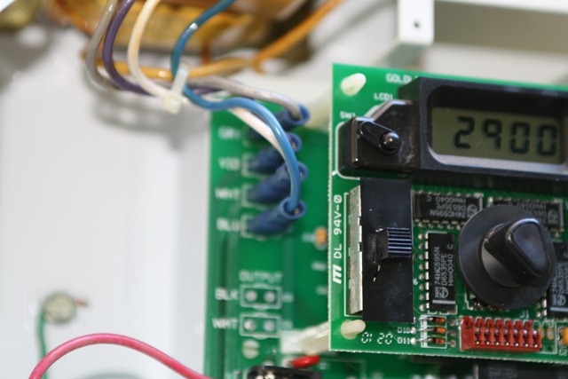 I called technical support at Goldline Controls (now part of Hayward) @ 908-355-7995. The helpful rep walked me through pushing the little test button to the left of the LCD display and I read him the readings it displayed. One of them was 0.0. I think that was the one that immediately made him say, “You’ve got a bad board.” I called the local repair facility and nearly had a heart attack when they told me it would cost $360+ to replace the board. Ouch. Doing some checking on eBay, I found that one could be had for a mere $180…about half the cost. I thought it was worth a try to attempt a repair (okay, I’m cheap).