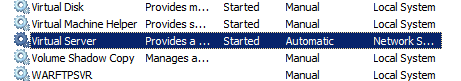 However, I had one last trick to try before another reboot. I opened the services applet and stopped/restarted the Virtual Server and Virtual Machine Helper services.