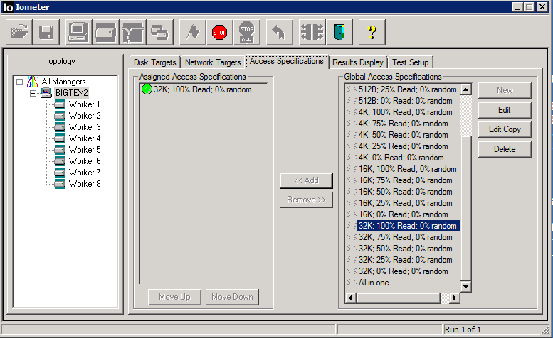I recently upgraded my 500GB mirror on BIGTEX2 to a 1TB mirror following my previously documented procedure. I’m adding the IOmeter results so I can now compare the previous array on BIGTEX2 to the new array. Here’s my setup. Again, I’m not a disk performance expert!