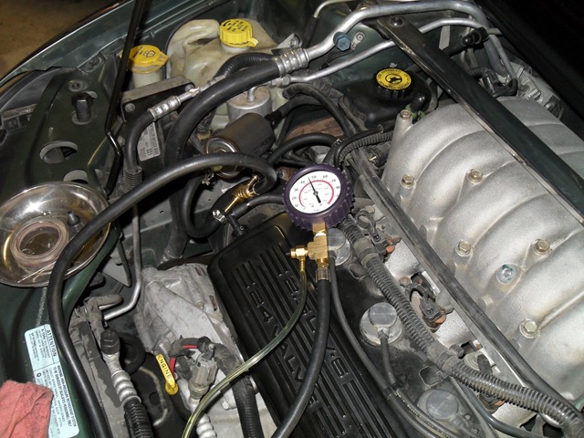 Now I had a good schrader fitting that I could attach the fuel test gauge to.