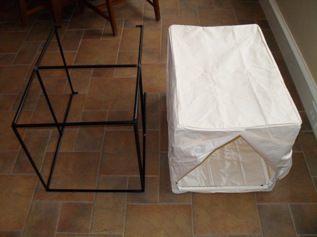 The original frame is constructed of flimsy 1/2” outside diameter plastic tubing. There are numerous connectors that allow you to connect all the pieces like Tinker Toys. Bad part is, after putting it together, it is almost impossible to zip the top and bottom halves of the cover together. It appears to be 1/2” – 3/4” too tall. Seems like it was made to be more like a convertible top, where you have to really stretch the material (plastic) to join it. This ain’t something that most mere mortals will be able to do without a heat gun or something to really soften the cover material so it will stretch easily. Plus, while attempting to zip it together, my wife busted one of the 3-way connectors. That makes it pretty worthless.