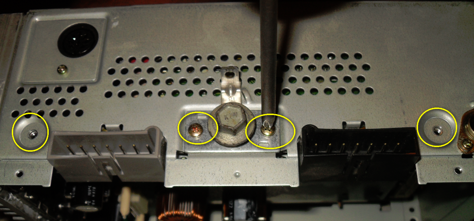 After removing the radio (not hard, 10 minutes, be careful and don’t bust your trim), you must remove the knobs as Jeremy describes (20 seconds). Then remove the four screws holding the faceplate on (two screws on each side).