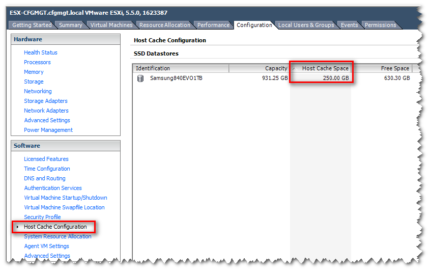 Once you get the SSD installed, you can choose to make all or part of it a cache for VMWare to use. You can set this in the Host Cache Configuration software setting in the Configuration tab of the vSphere client.