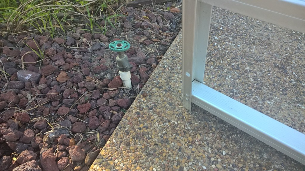 The primary problem is the 1/4" tubing never seems to last more than one season.  We’re in Texas and it’s hot!  Between the heat and the (somewhat) cold (yes, it does freeze at times), the tubing becomes fragile and breaks, necessitating its replacement every season.  So, when the kids are over and it’s broken, a hose gets dragged to the slide and tied to and draped over a handle.  Not cool.  Plus, whether it’s the hose or the spigot, it’s up to me to turn off the fresh water supply, since no one ever seems to be able to do that when they are done.