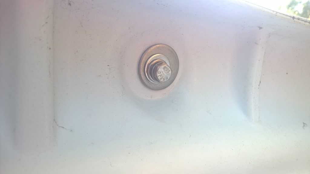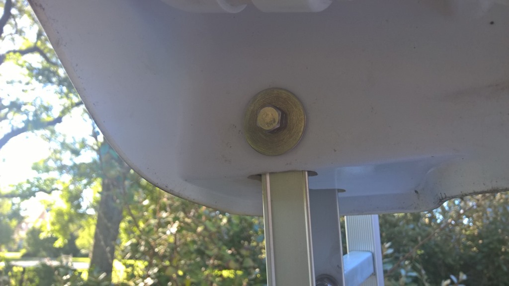 Next, I replaced all the hardware with stainless steel hardware.  I ended up having to cut some of the bolts because the salt had corroded them so badly.  My hardware was ordered from Albany County Fasteners on the web.  Love these guys and their stainless hardware.  Shipping is free with a $25 order!  Or you can purchase stuff from them on eBay.  Here you can see the carriage bolts replaced with stainless.