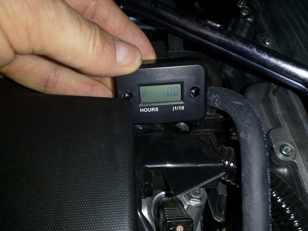 So here it is installed and I’m testing it. Already have 0.1 hours (6 minutes) on the meter. Had to run it around the neighborhood in Sport HV mode.